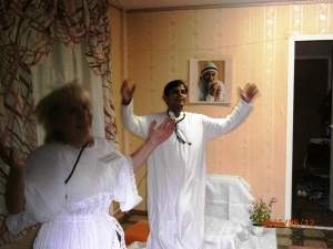 На фото: сектантский гуру Свами Ананд Архат вводит северодвинских адептов в транс