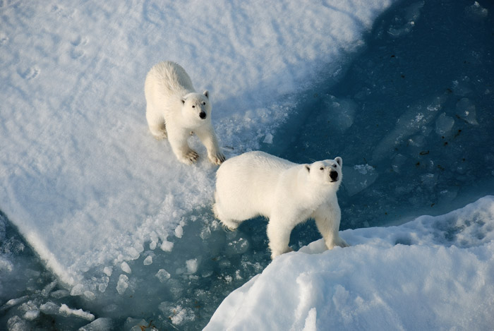 Северный и Южный полюса. Глобальное потепление грозит вымиранием 80% императорских пингвинов Антарктиды. В Арктике же уничтожение грозит белым медведям, ведь вместе с таянием полярных льдов гибнут целые экосистемы, включая пищевые цепочки. Новые массивы льда перестанут формироваться в Антарктиде в течение 20-40 лет.